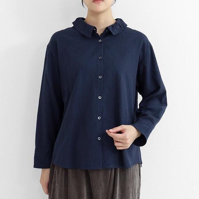 一枚仕立てのタック衿とカフスでやわらかな印象に。 短め丈でスカートにもパンツにもよく合います。 ウール混で肌寒い季節でも暖かです。