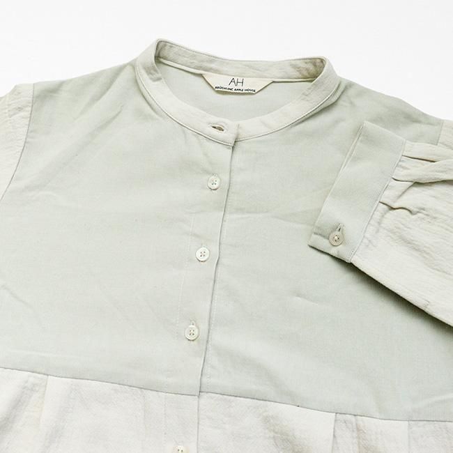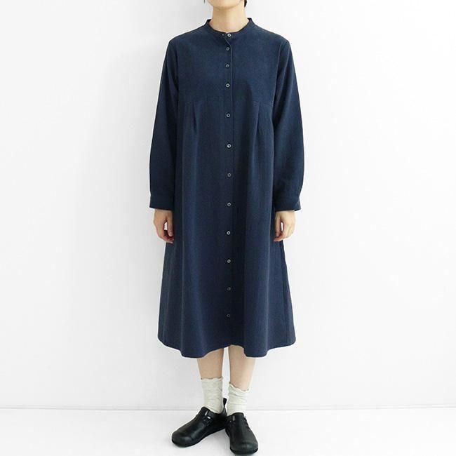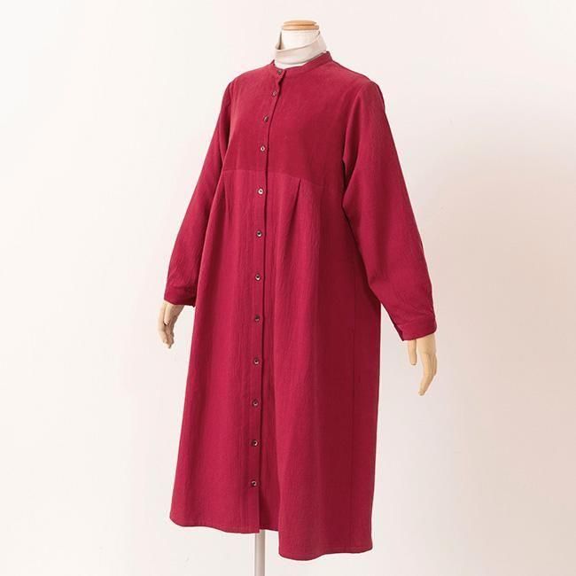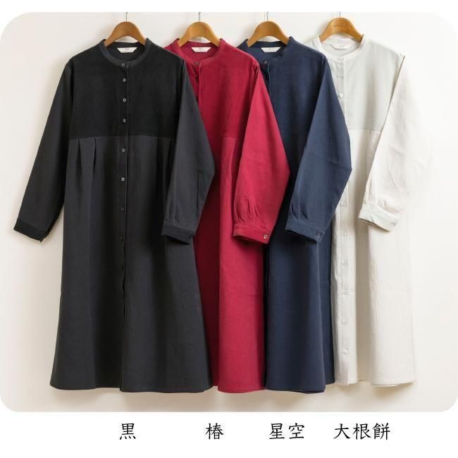 ガーゼと細コーデュロイの組み合わせのワンピースはコートとしても重宝します。