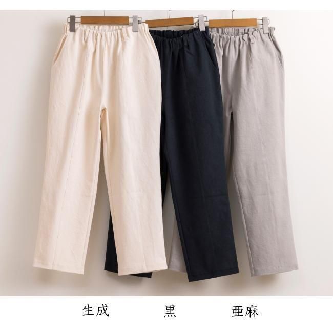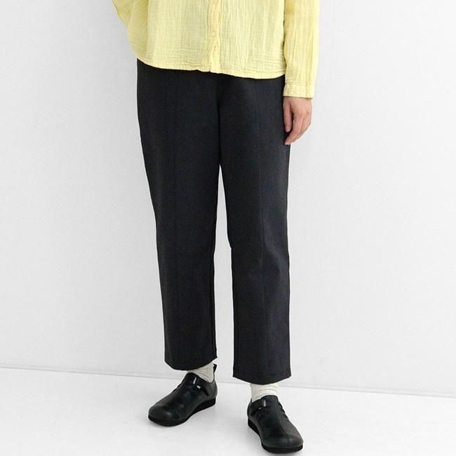 縦切り替えで細見え効果のあるストレッチパンツ。