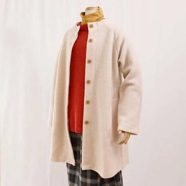 腰回りもカバーするウール混のロング丈アウター。